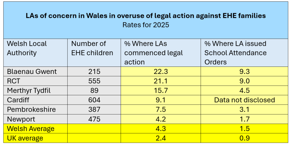 ➡️Other Welsh LAs commence legal proceedings against families at a much higher rate that the UK average, as shown in the summary table below.