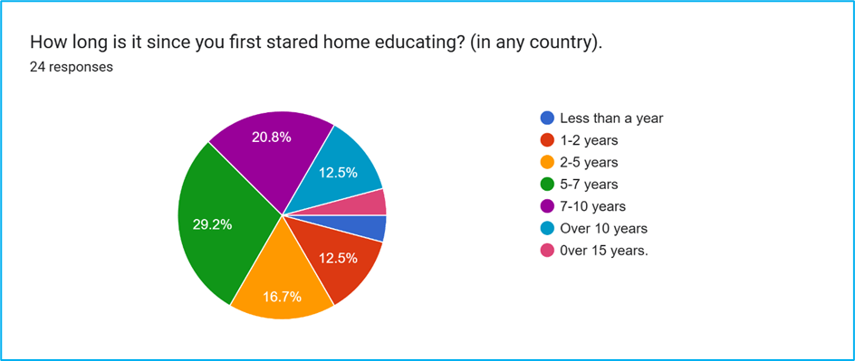24 responses were obtained over a 4-day period. These were generally experienced home educators, with the duration of their home education experience demonstrated in Figure 1.