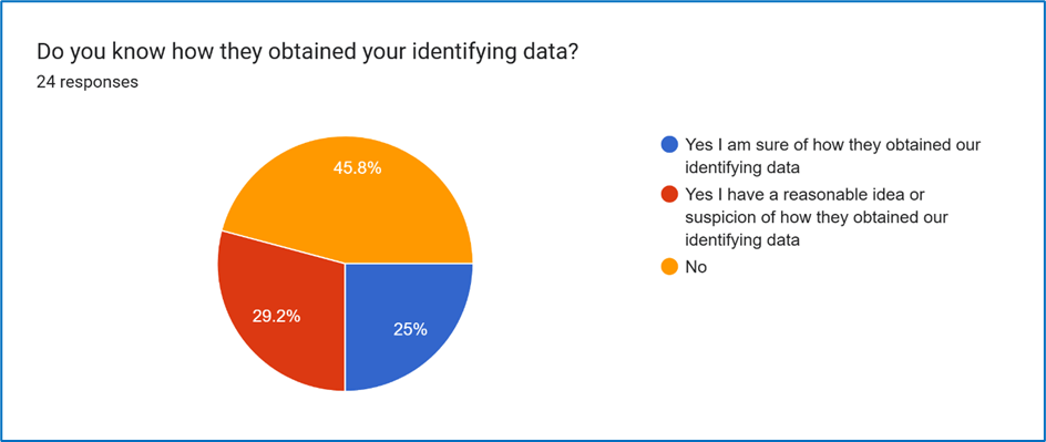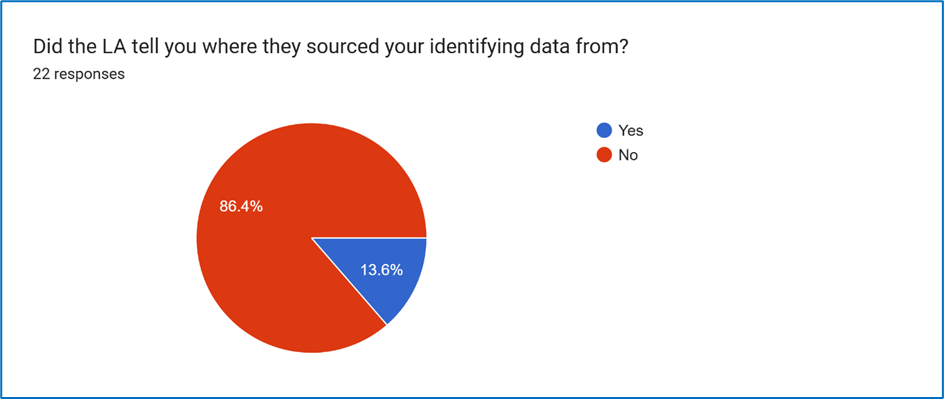 Nearly half of respondents did not know how the LA obtained their identifying data. Only 25% felt confident that they knew the source that had shared their identifying data.