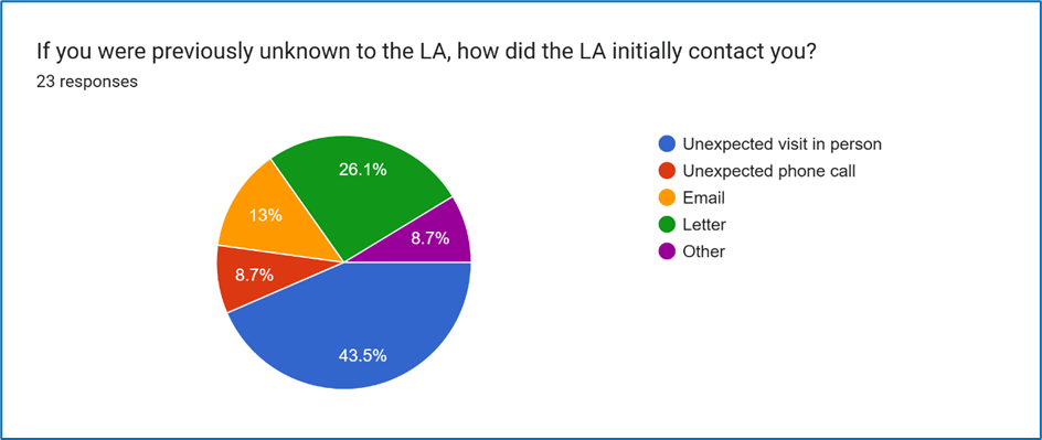 Question 8: experiences and impact of initial unexpected contact, including the mode of contact chosen by the LA.