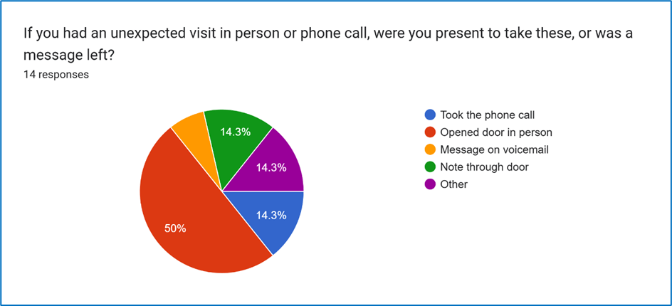 Such unexpected modes of contact were received (by opening the door or taking the phone call) in 64.3% of cases.