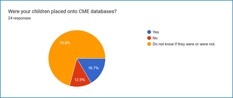 Question 12, Figure 9: were children placed onto CME databases and if so, were families aware.