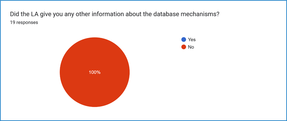 That concerning observation and criticism of the pilot is confirmed in Question 13 Figure 9, which demonstrates that no family were given any further information about the database mechanisms.