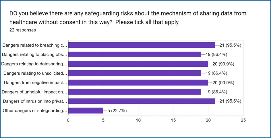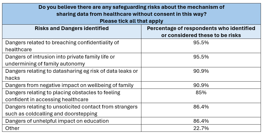 The lack of benefit for children and families of non-consensual datasharing and the CME database pilot mechanisms was demonstrated in Question 14, Figure 10,