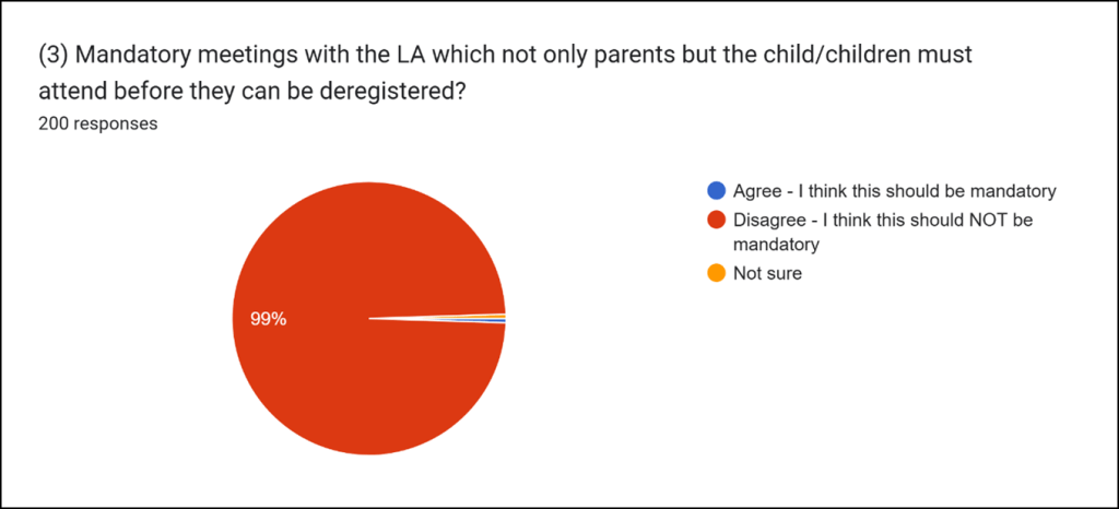 - Concerns were raised that such meetings, with the delays and potential obstructions to deregistration would be dangerous, risking suicide and self-harm, damaging to children’s wellbeing, and counterproductive.