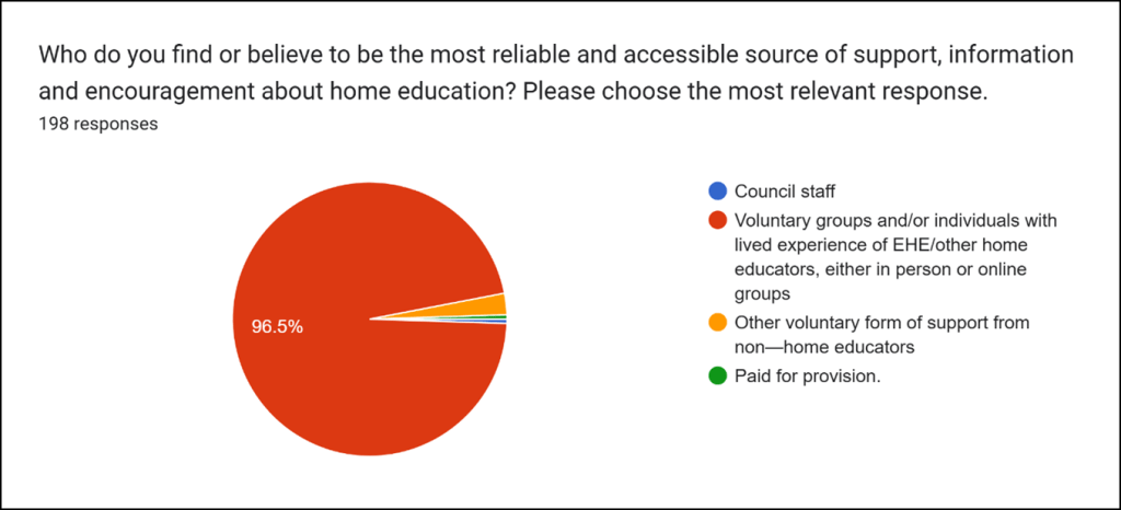 This is somewhat ironic, as these 3 questions and figures relate to concepts claimed in the WG commissioned evaluation of their EHE guidance to be advocated and favoured by council staff employed to engage with home educators.