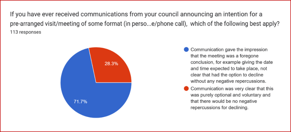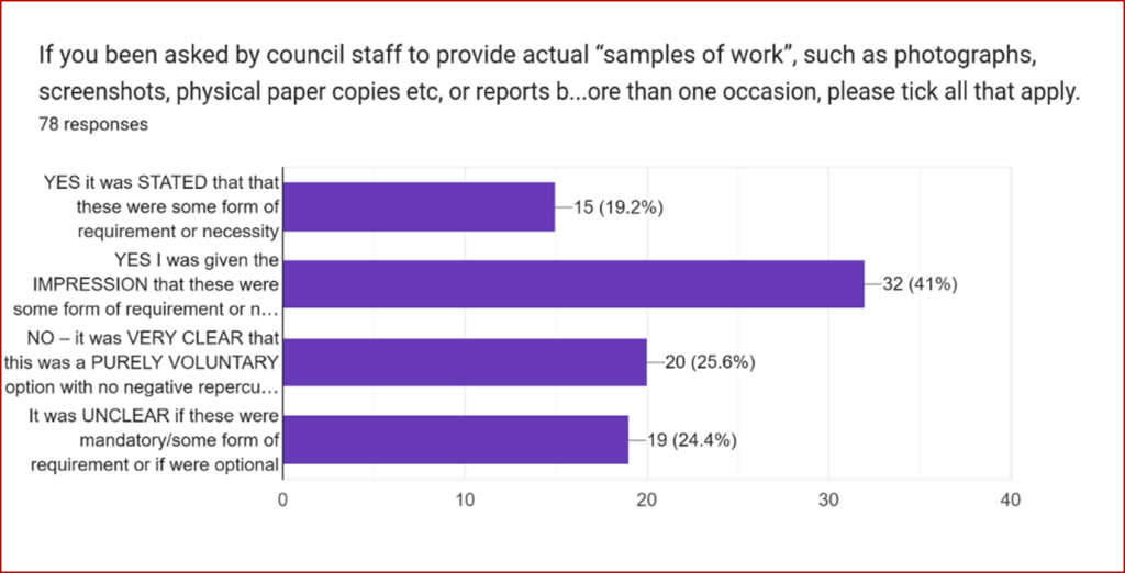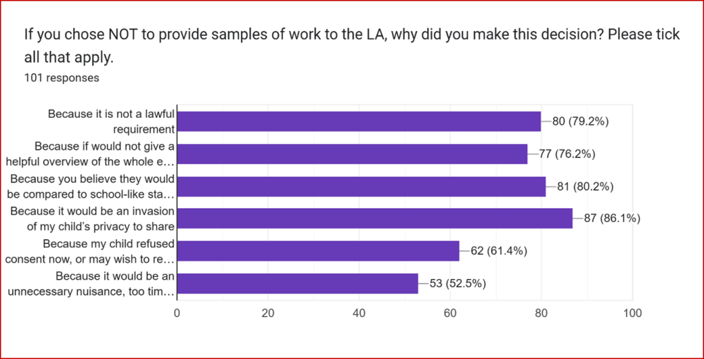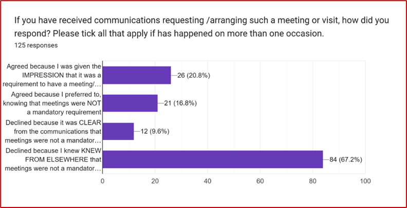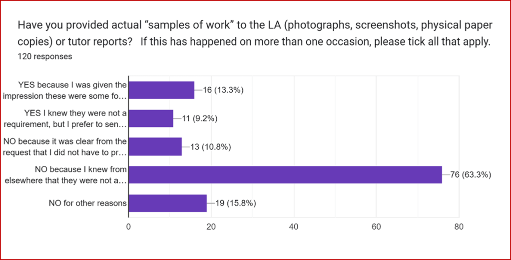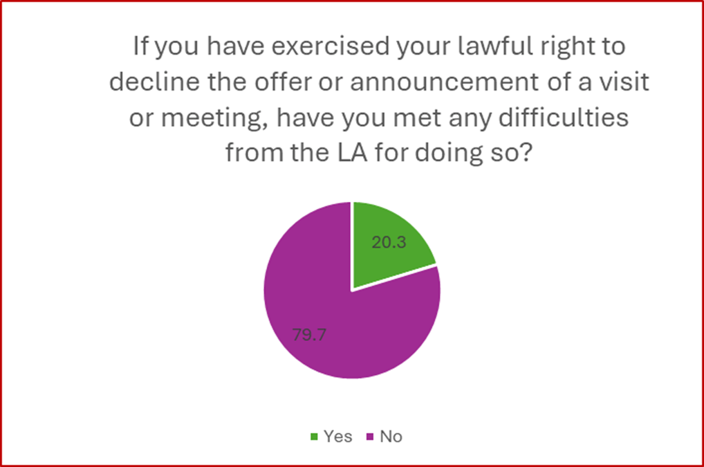 A selection of responses to the question were from those who had met such difficulty in declining demands from LAs that did not have a lawful basis that they had “given in” to LA demands against their will and choice, or had agreed because of being led to believe these were a requirement.