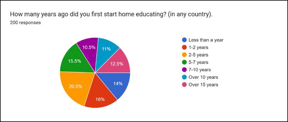 Responses were received from home educators in every local authority area in Wales, and reflected a wide range of experience as home educators, as show below.